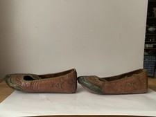 Plat turquoise. De la marque sans marquegénérique , Du style babouches , une touche distinctive de type brodé et une matière de la équivalent à cuir, Par exemple: turquoise, souple. Occasion ici en France ¬