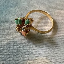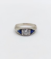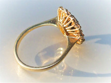 Bague sertie sans marquegénérique . De style dôme; Une pierre secondaire -> rubis de même qu'un métal équivalent à or jaune 18k et encore entre autres: diamant, rubis ¬