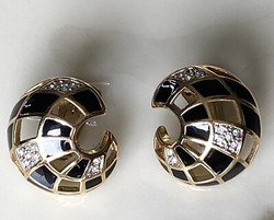 Boucles oreilles signée. En métal doré en outre d'une couleur principale dorée et noir mais aussi un métal ´alliage´ - Un fermoir représenté par clips ¬