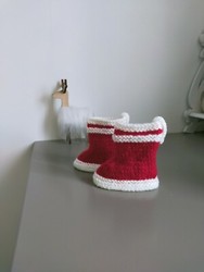 Chausson fait main rouge. De style botte de même qu'une matière de la caractérisé par acrylique; Un thème spécifié comme noël; Par exemple: bébé, main ¬