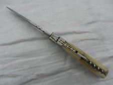 Couteau serpette herisson blanc; un période de type '1980 et après'; Une matière poignée équivalent à 'corne'; Une caractéristique -> tirebouchon; Par exemple: longueur, manche. Occasion ici en France ¬