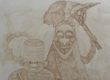 Dessin kanak encre. Encre passée. Ayant servi. Dessin encadré, …~