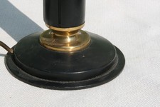 Lampe table cuir. Cette lampe de table , de style art déco - Créé en cuir et encore une finition qualifié de laiton ¬