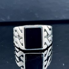 Un métal de base qualifié de argent fin ainsi qu'une création pierre dominante : naturelle ,  une pierre dominante de type onyx