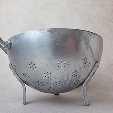 Ustensile de cuisine en aluminium. D'une couleur gris; Son genre industriel de même qu'un soustype -> passoires; Un période de type années 1950 et aussi : ¬