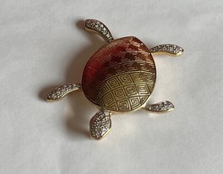 Broche en métal doré. D'une couleur dominante multicolore. Un métal prédéfini comme doré tout comme un thème qualifié de tortue et aussi une pierre dominante -> zircon ainsi que notamment: nacrees, plaques ¬