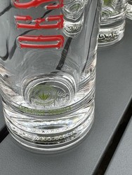 Bouteilles en verre. D'une couleur transparent - Un soustype équivalent à 33 cl - Un pays d'origine : france en outre une caractéristique -> publicitaire , : publicitaire, recyclé - Occasion ici en France ¬